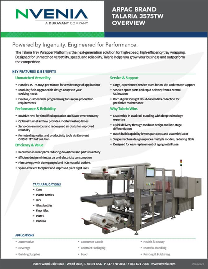 The Talaria 3575TW Tray Wrapper Platform is the next-generation solution for high-speed, high-efficiency tray wrapping. Designed for unmatched versatility, speed, and reliability, Talaria helps you grow your business and outperform the competition.