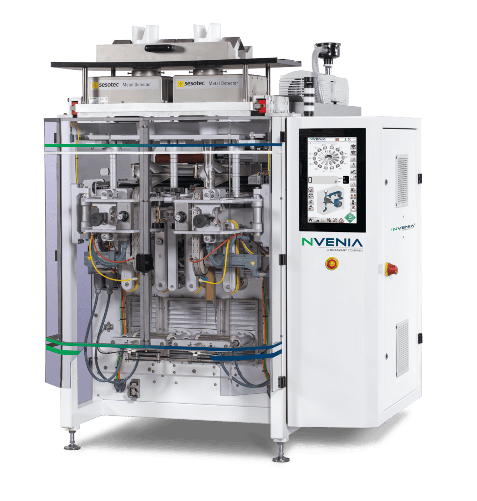 nVenia’s comprehensive line of primary and end-of-line packaging solutions now includes open mouth bagging machines, vertical form fill seal systems, multi-head weighers, auger fillers, and pre-made pouch machines, alongside palletizing and stretch hooding systems. Designed to handle a wide range of products, this versatile portfolio is ideal for accurately dispensing and bagging free-flowing and difficult-to-flow materials such as powders (whey, flour, fertilizer), agricultural products (seeds, rice, beans), building materials (sand, gravel, lime), and animal feeds.