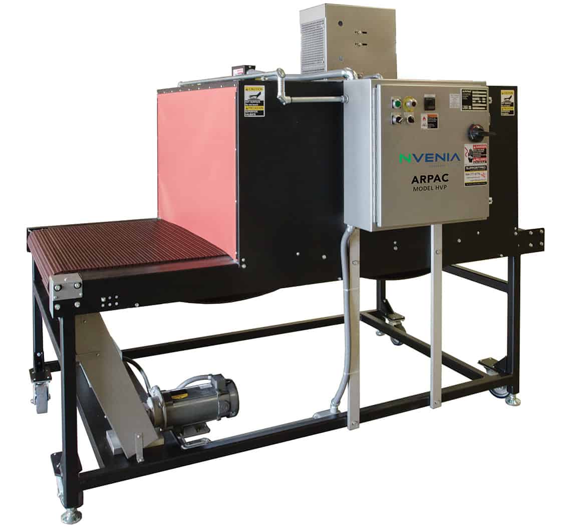 nVenia’s ARPAC Brand shrink tunnels deliver uniform film shrink, cycle after cycle, using heavy-duty, variable speed blowers and heating elements. This combination creates a recirculating air system that forces air to all package surfaces. Our systems handle sizes from small to extra wide, long or tall. Independent control systems regulate temperature, air velocity and conveyor speeds. The efficient heating system on each machine reduces the amount of electricity they need to run, thus reducing the cost of operation. With over 30,000 machines installed, take advantage of nVenia’s expertise in shrink.