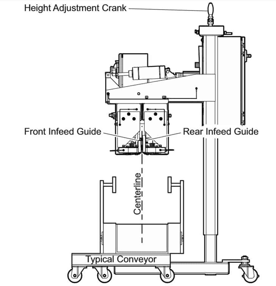 When first setting up a Pinch Bag Closer (PBC) or Pinch Inner Liner Sealer (PILS) for operation they must be properly placed vertically and horizontally in relation to the conveyor system. This is referred to as “Leveling” and “Centering.”