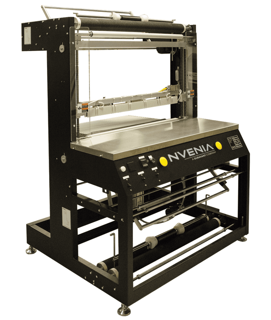 - Powered film feed – top and bottom rolls automatically adjust to varying depths and heights of intermixed bundles