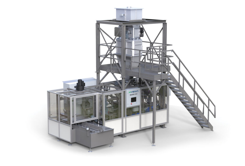 nVenia’s comprehensive line of primary and end-of-line packaging solutions now includes open mouth bagging machines, vertical form fill seal systems, multi-head weighers, auger fillers, and pre-made pouch machines, alongside palletizing and stretch hooding systems. Designed to handle a wide range of products, this versatile portfolio is ideal for accurately dispensing and bagging free-flowing and difficult-to-flow materials such as powders (whey, flour, fertilizer), agricultural products (seeds, rice, beans), building materials (sand, gravel, lime), and animal feeds.