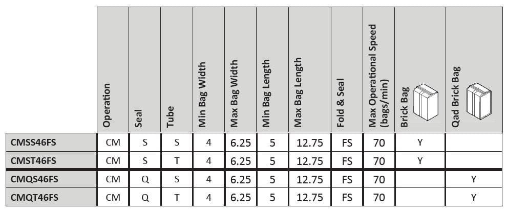 - Flexible bag formats, including brick, pillow, and side-gusset styles