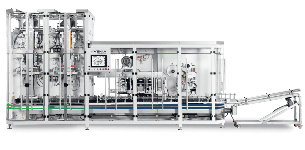 Built with 304 stainless steel contact surfaces and precision servo-driven “D” motion, the Optima ensures smooth operation and consistent sealing at high speeds. Paired with a nVenia dosing system—such as a combination weigher, linear scale, or auger filler—it centralizes line control through a 15” icon based HMI.
