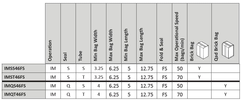 • Flexible bag formats, including brick, pillow, and side-gusset styles