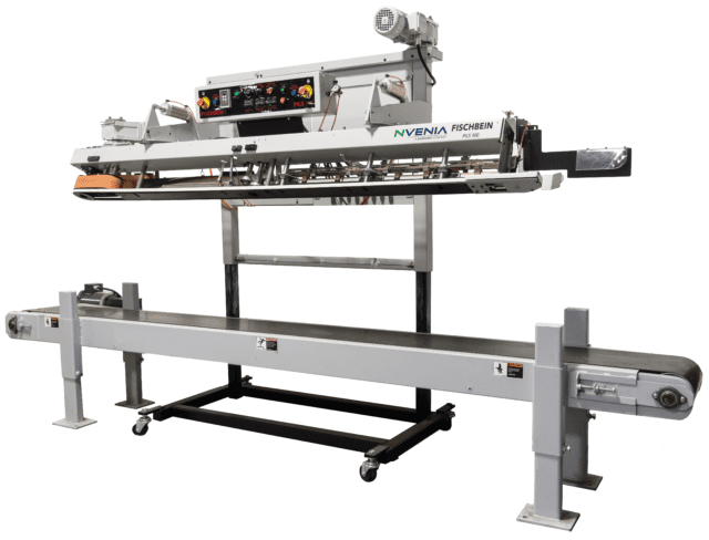 Our Fischbein Brand PILS 300 Pinch Inner Liner Sealer features a continuous sealing process that sequentially seals the bag’s inner liner and then folds and seals the top of the pre-glued pinch bag. Operating at speeds up to 75 linear feet per minute, the PILS 300 is safe and easy to use. It can be easily integrated in semi or fully automated bagging applications. The patented breakaway design eliminates costly downtime caused by bag jams while allowing easy cleaning and service of the hot air manifold and bag folder.