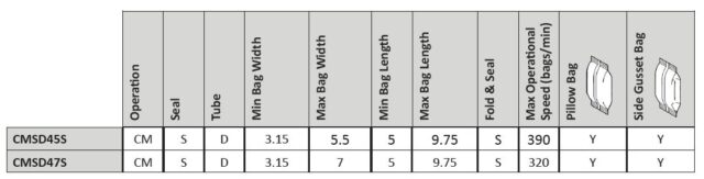 • Servo-driven “D” motion seal jaws for longer dwell time and consistent seals