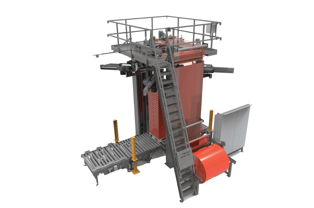 The nVenia VSH Stretch Hooder machine stands as the optimal solution for pallet covering requirements. Through specialized techniques, it delivers ultimate protection for palletized products, ensuring their safe and secure transit. Unaffected by temperature variations, humidity, static film, or inferior pallet quality, the Stretch Hooder reliably secures the load, safeguarding your goods during transportation.