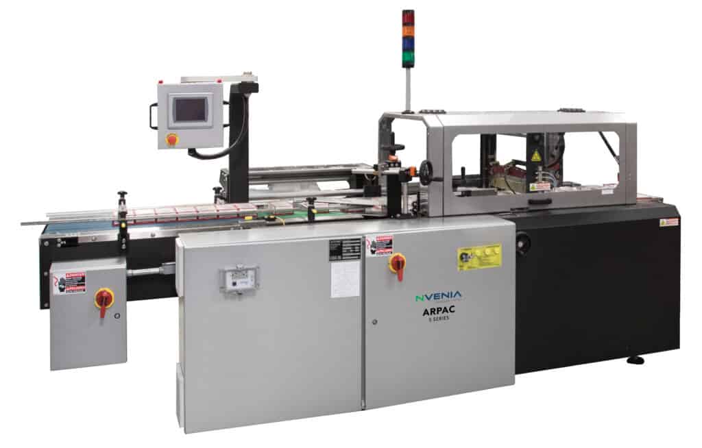 nVenia’s ARPAC Brand EXTREME XS models excel in a wide variety of applications. These servo driven wrapping systems are designed to increase productivity, reduce wear and tear on parts, and eliminate wasted time and energy by using a continuous motion design with a smooth, fast, and unbroken flow. With their superior design, the XS models are more reliable, require less maintenance, use less film and energy, and provide superior film tension for a more consistent package. Additionally, the XS continuous motion wrappers will typically require 2-4” less film width than automatic L-sealers, intermittent motion wrappers, or any wrapper where the film path runs under the infeed conveyor, providing cost savings on consumables.