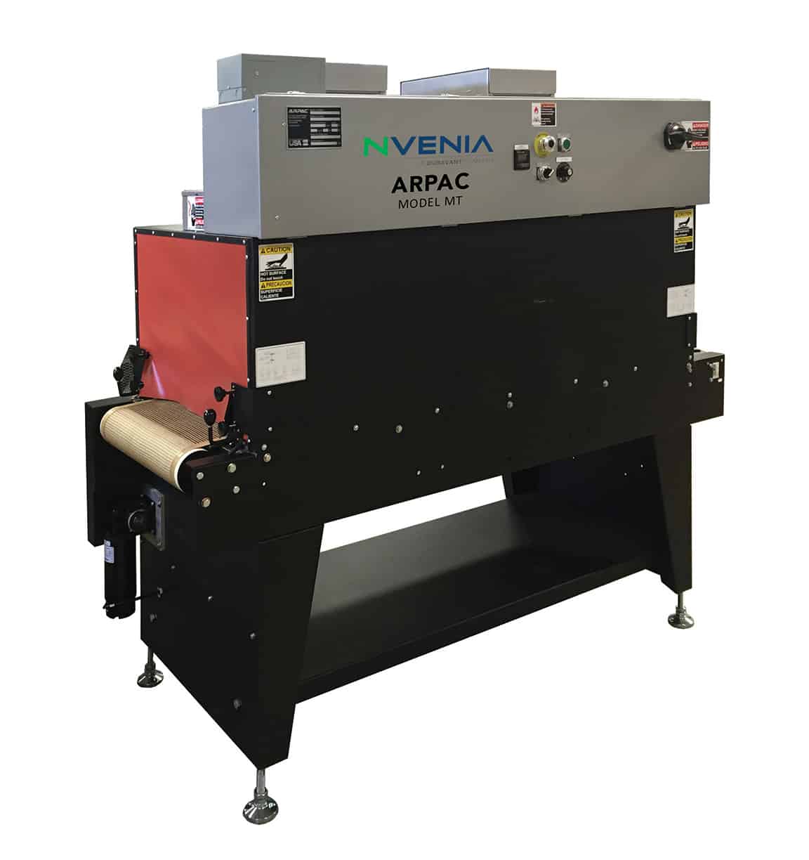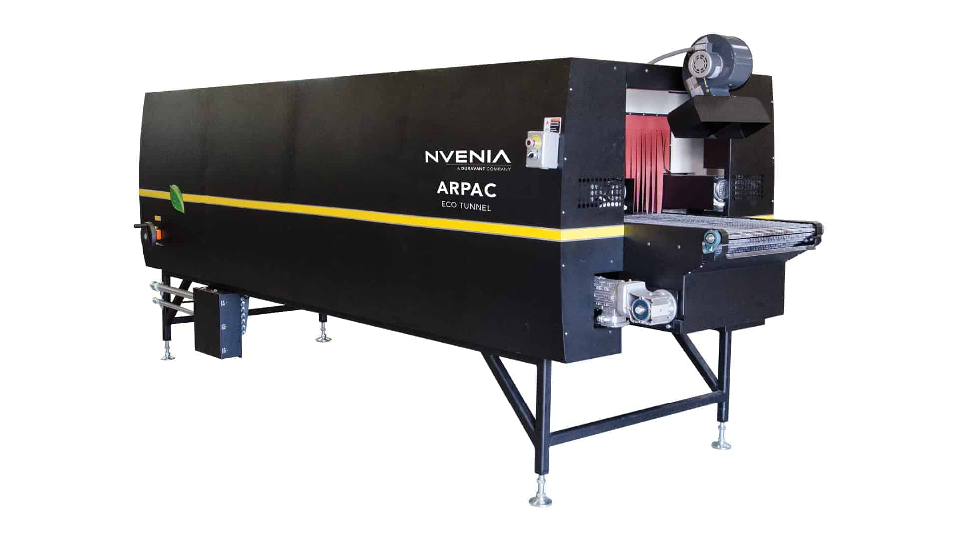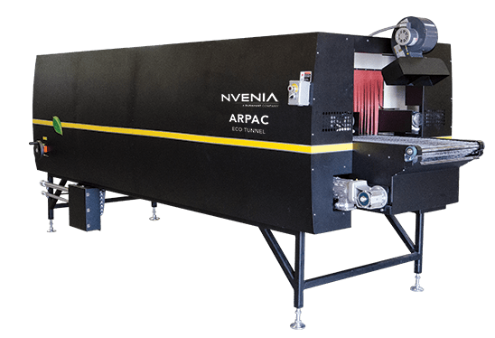 nVenia’s ARPAC Brand shrink tunnels deliver uniform film shrink, cycle after cycle, using heavy-duty, variable speed blowers and heating elements. This combination creates a recirculating air system that forces air to all package surfaces. Our systems handle sizes from small to extra wide, long or tall. Independent control systems regulate temperature, air velocity and conveyor speeds. The efficient heating system on each machine reduces the amount of electricity they need to run, thus reducing the cost of operation. With over 30,000 machines installed, take advantage of nVenia’s expertise in shrink.